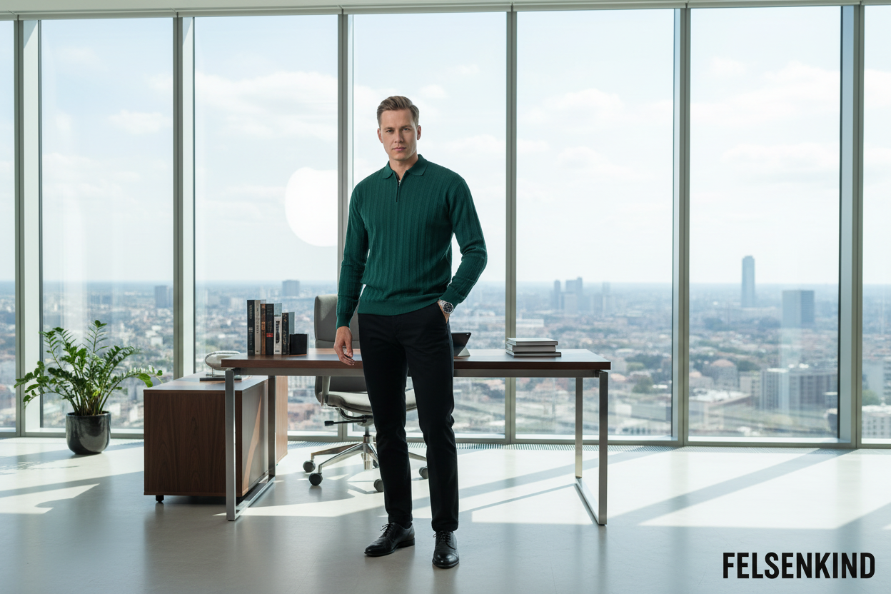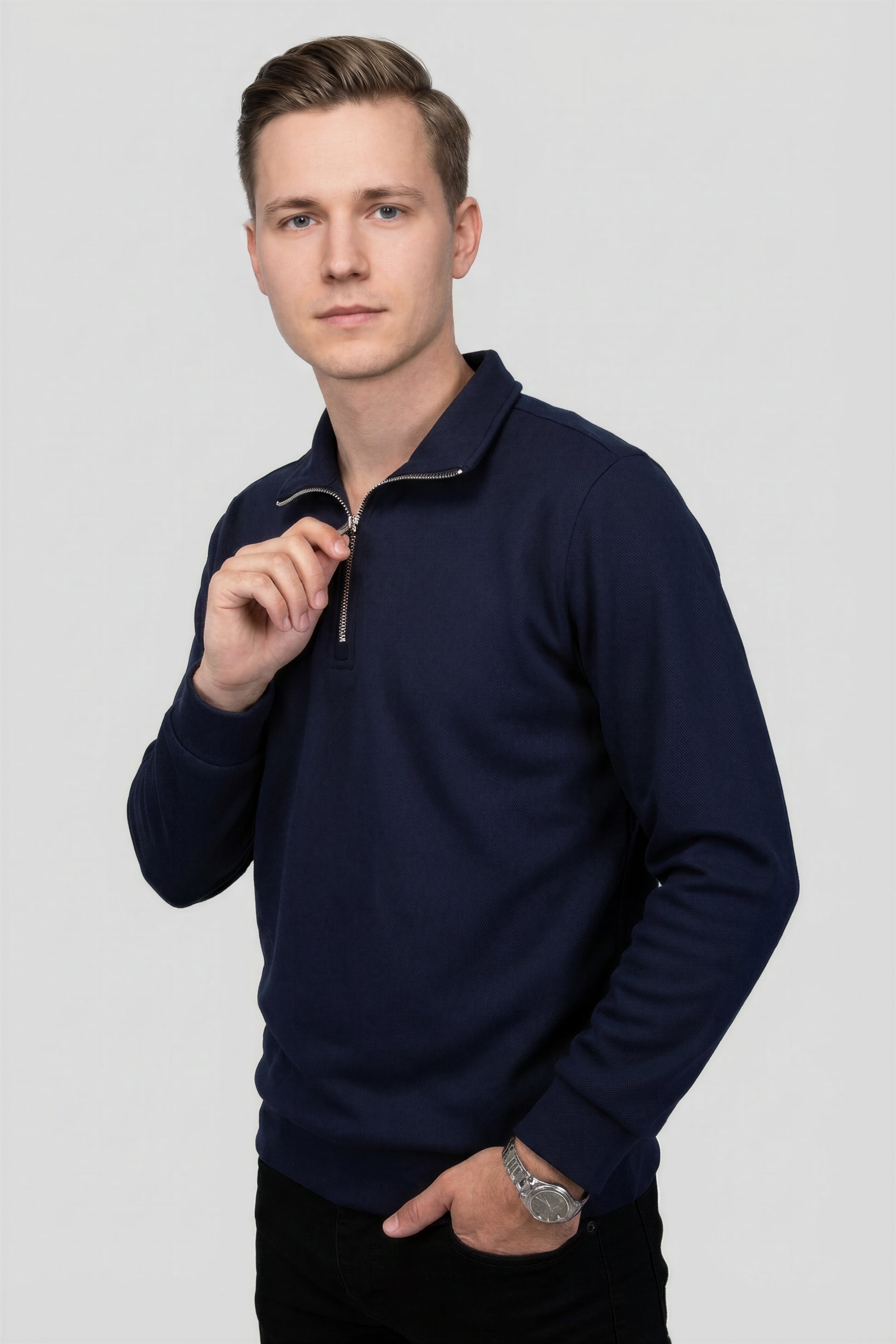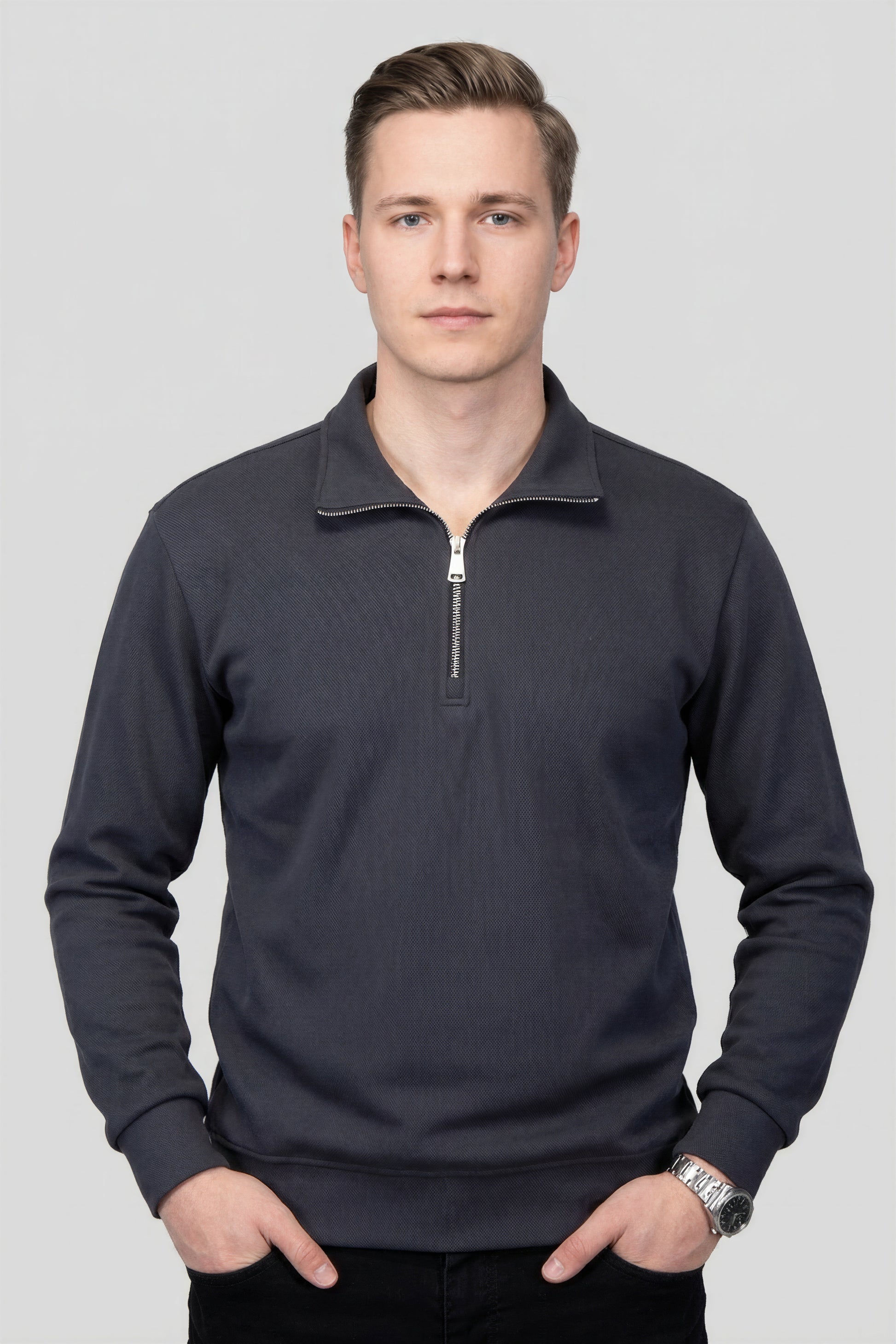 Felsenkind Herren Quarter-Zip Pullover – Langarm Sweatshirt mit Reißverschluss