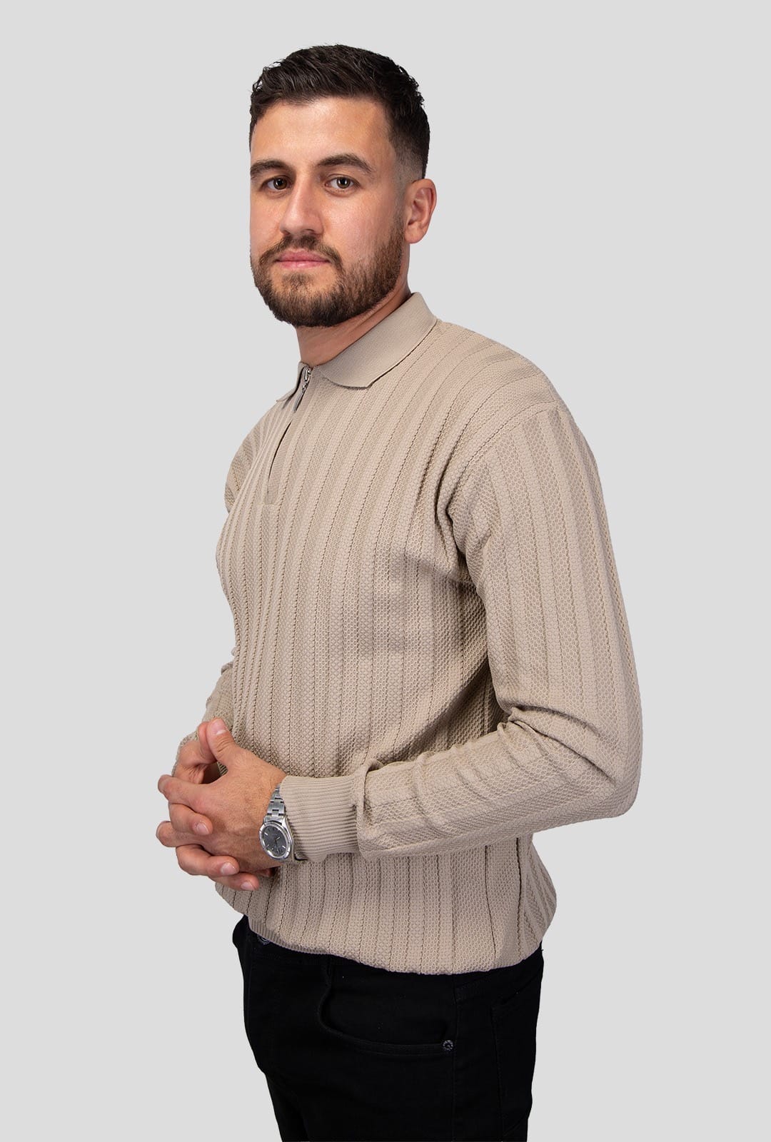 Felsenkind Herren Strick-Poloshirt mit Reißverschluss – Dünnes Feinstrick-Oberteil Sweatshirt